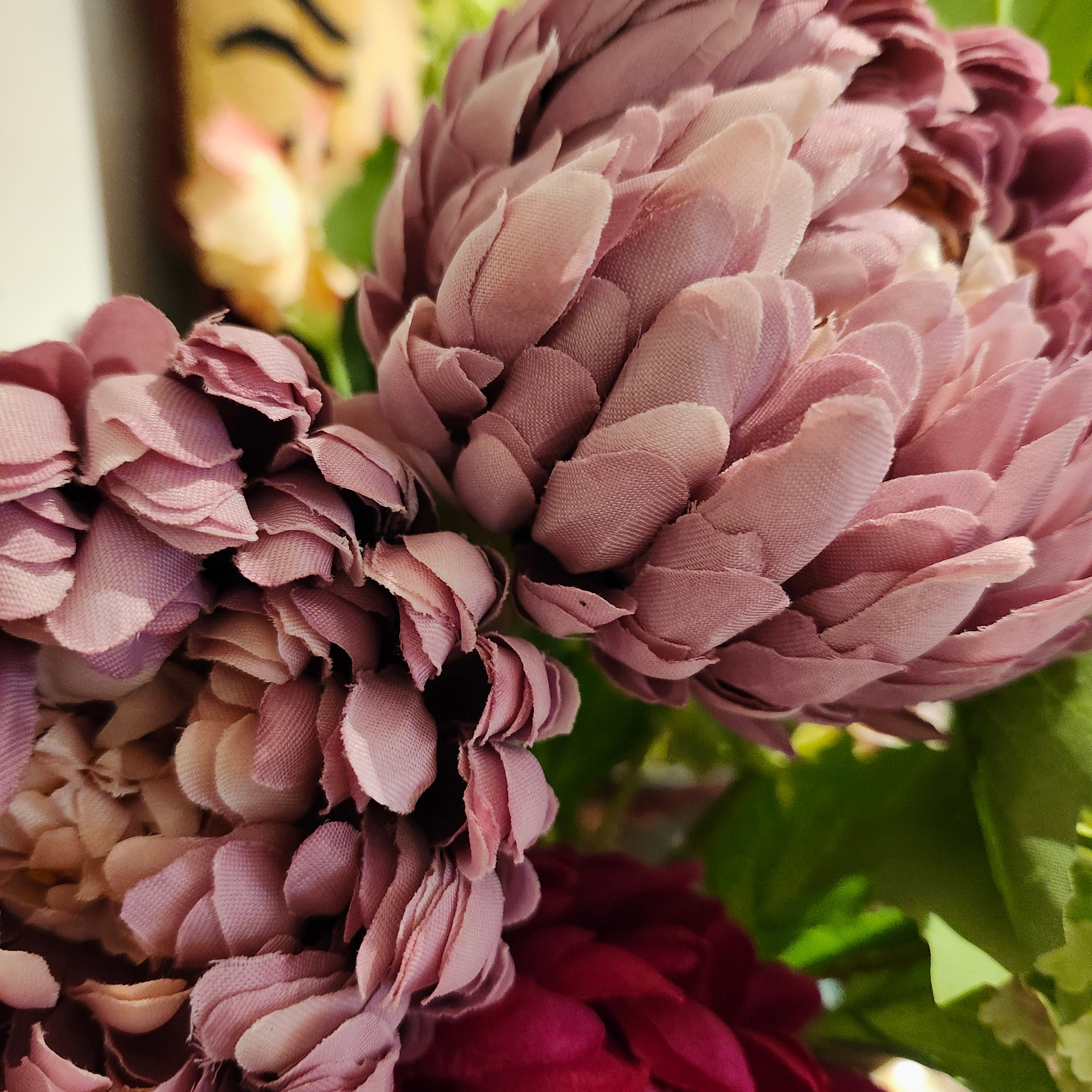 Startlingly life like large peony, available in five colours, magenta, deep pink, lilac, light green and cream.