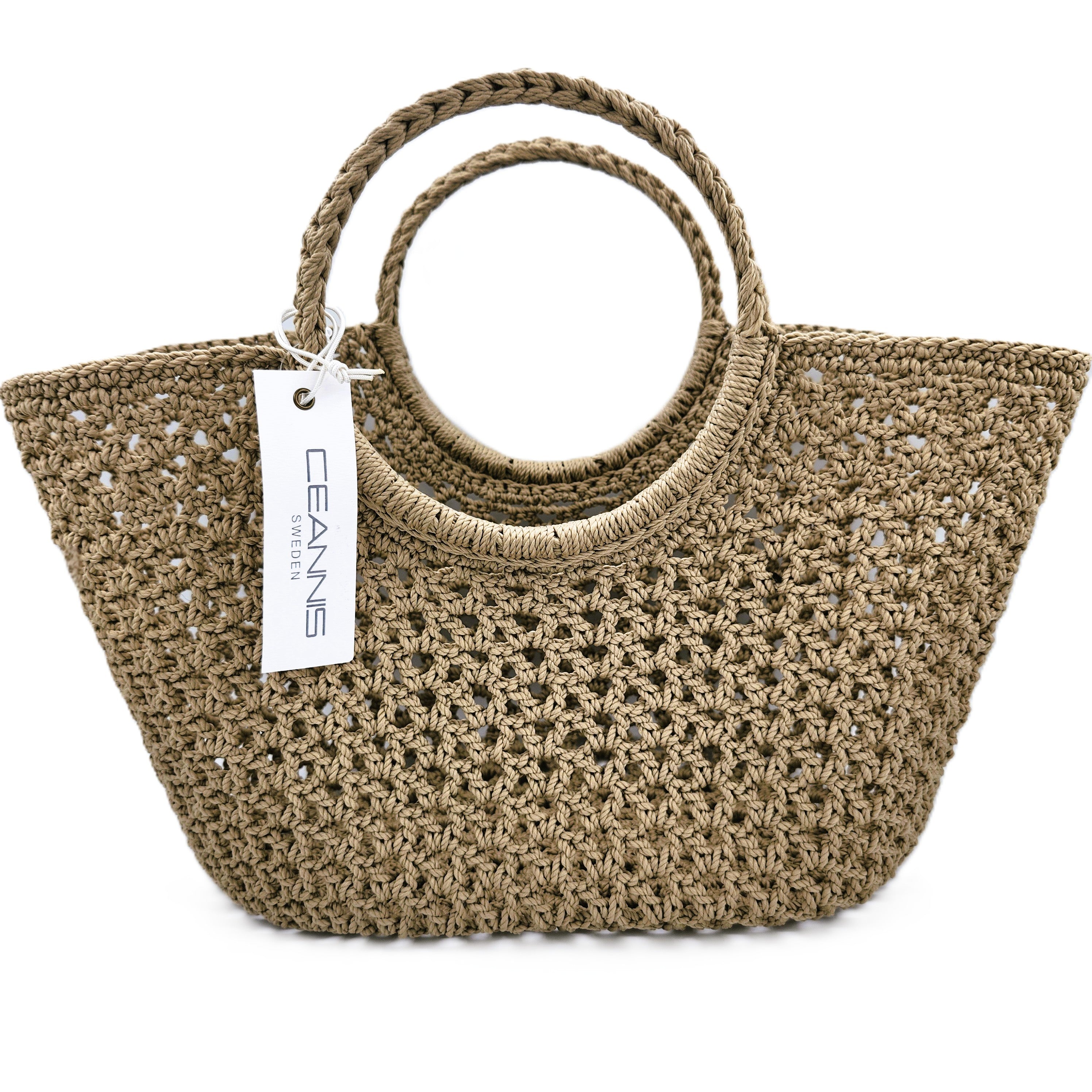 This stylish crochet basket from Ceannis combines style and function.  This roomy bag is crafted in a beautiful pattern and sits comfortably over the shoulder.   A must have for an elegant look.  The outer is made from a water resistant woven polyester thread.
