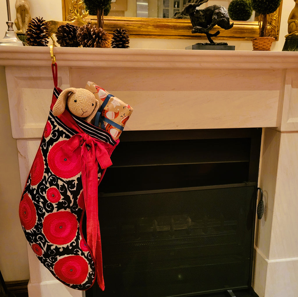 Suzani Christmas Stocking w/ Black Stripes