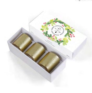 This gorgeous set of three travel candles in a Christmas gift box combines pine, cypress and eucalyptus, with a base of musk, vanilla and sandalwood. The holders are made by hand from hammered brass, and once the candles are used up, could serve as attractive tea light holders.