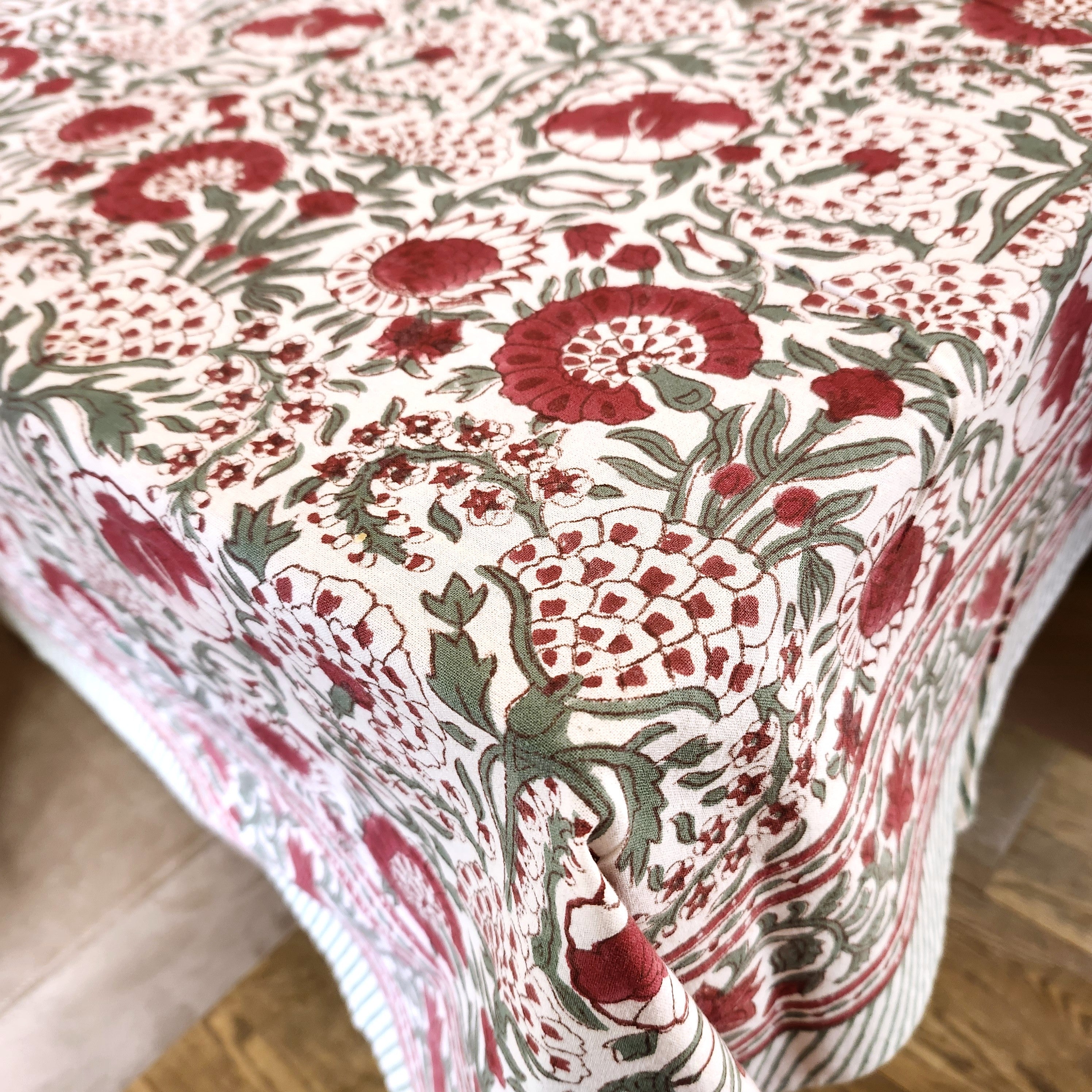 These cheerful block-printed tablecloths are a great choice for celebrations, especially when a bit of green and red is required, but equally suitable for everyday use.   Made from cotton, which has a soft handle and beautiful drape, pair with our placemats, napkins, plates and napkin rings for a finished look.
