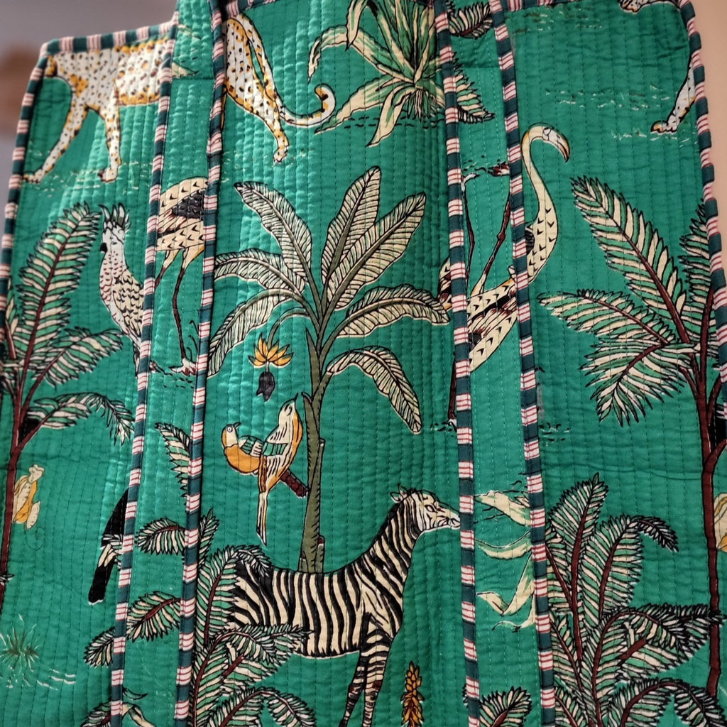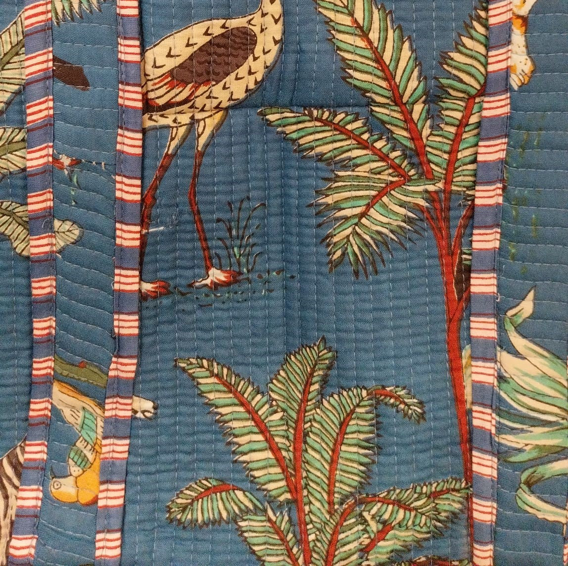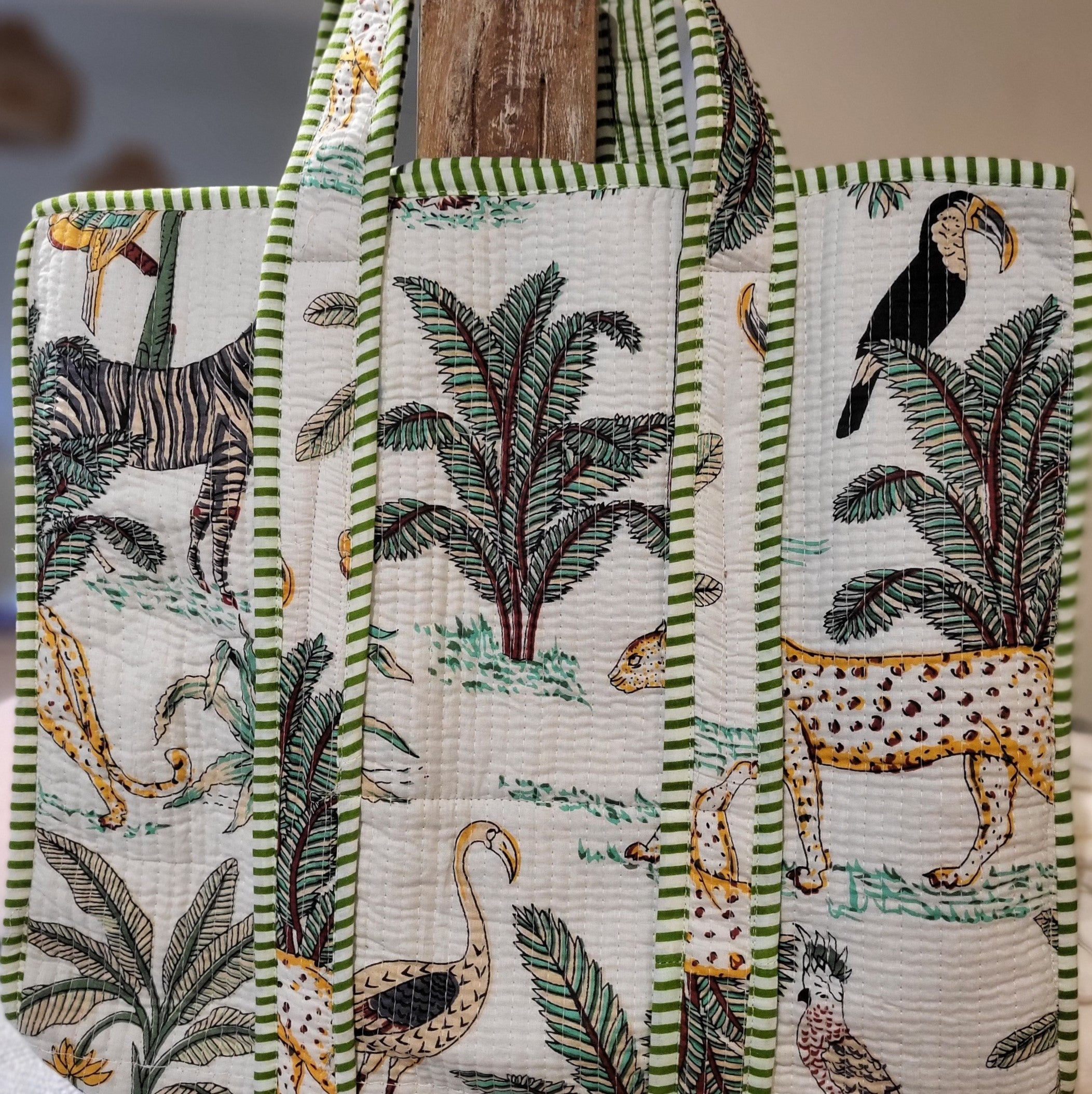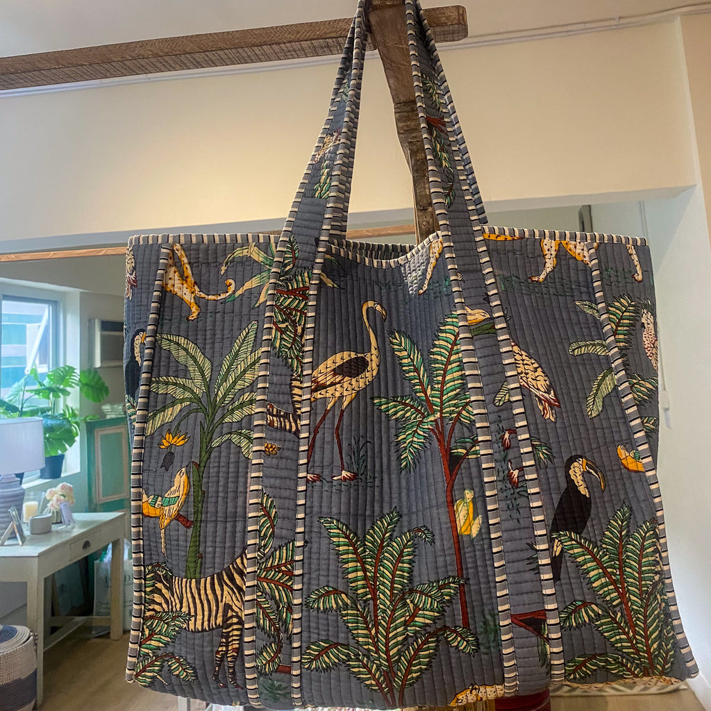 Discover the ultimate blend of style and functionality with our block printed shopper bags in a variety of different flower designs. Made in a quilted fabric, each bag has a contrast lining and an interior pocket. Generously sized, it accommodates all your essentials with ease!