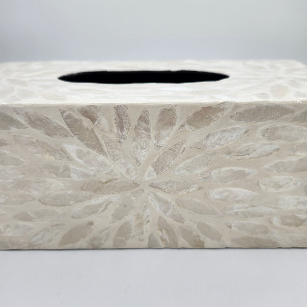 These tissue box covers feature a simple pattern in irridescent natural shades of mother of pearl. Made by hand, so every piece is slightly different.