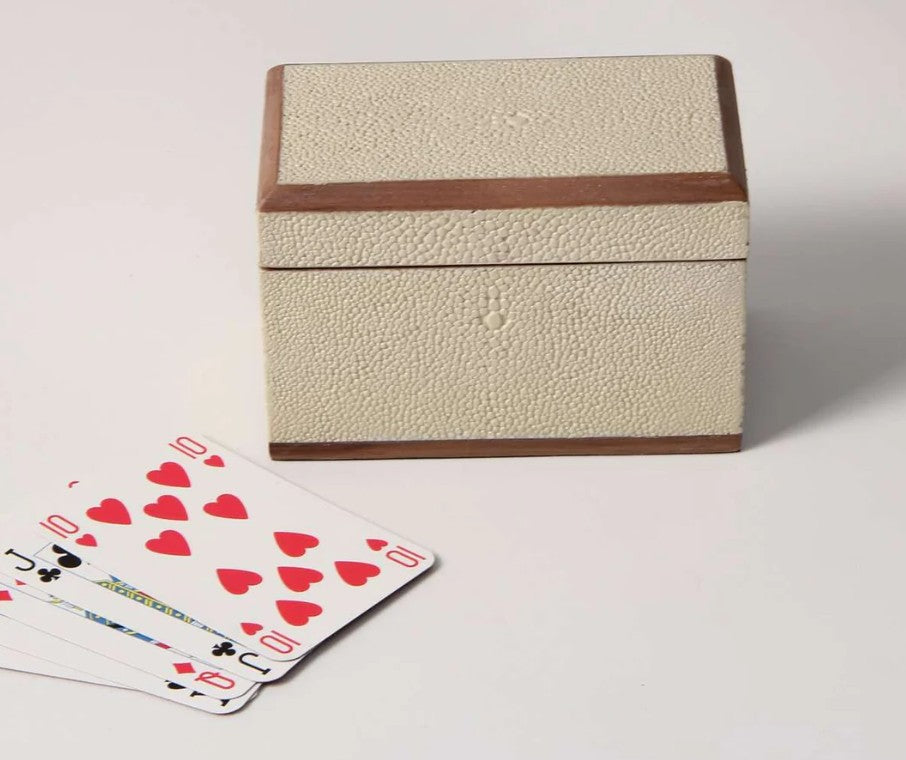 Faux Shagreen Playing Card Box Almond White