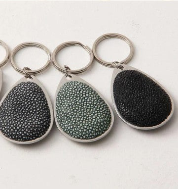 Keep your important keys on one of these stylish ‘Pear Drop’ Key Fobs in Faux Shagreen and high quality stainless steel. With no sharp edges or corners, the key fobs fit comfortably into a pocket or handbag.