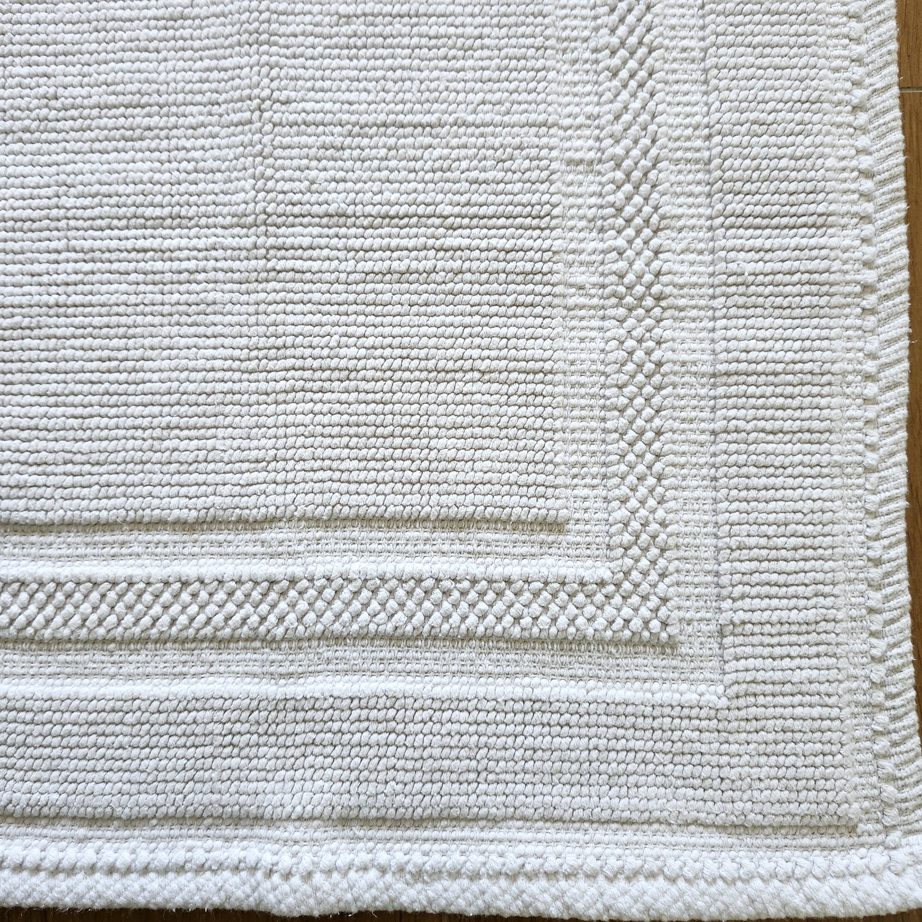 We've been looking for a while for a stylish but practical bath mat or bath rug. Soft and absorbent, 100% stonewashed cotton for a chic, natural look, and with a comfortable looped weave in an elegant design, this ticks all our boxes.