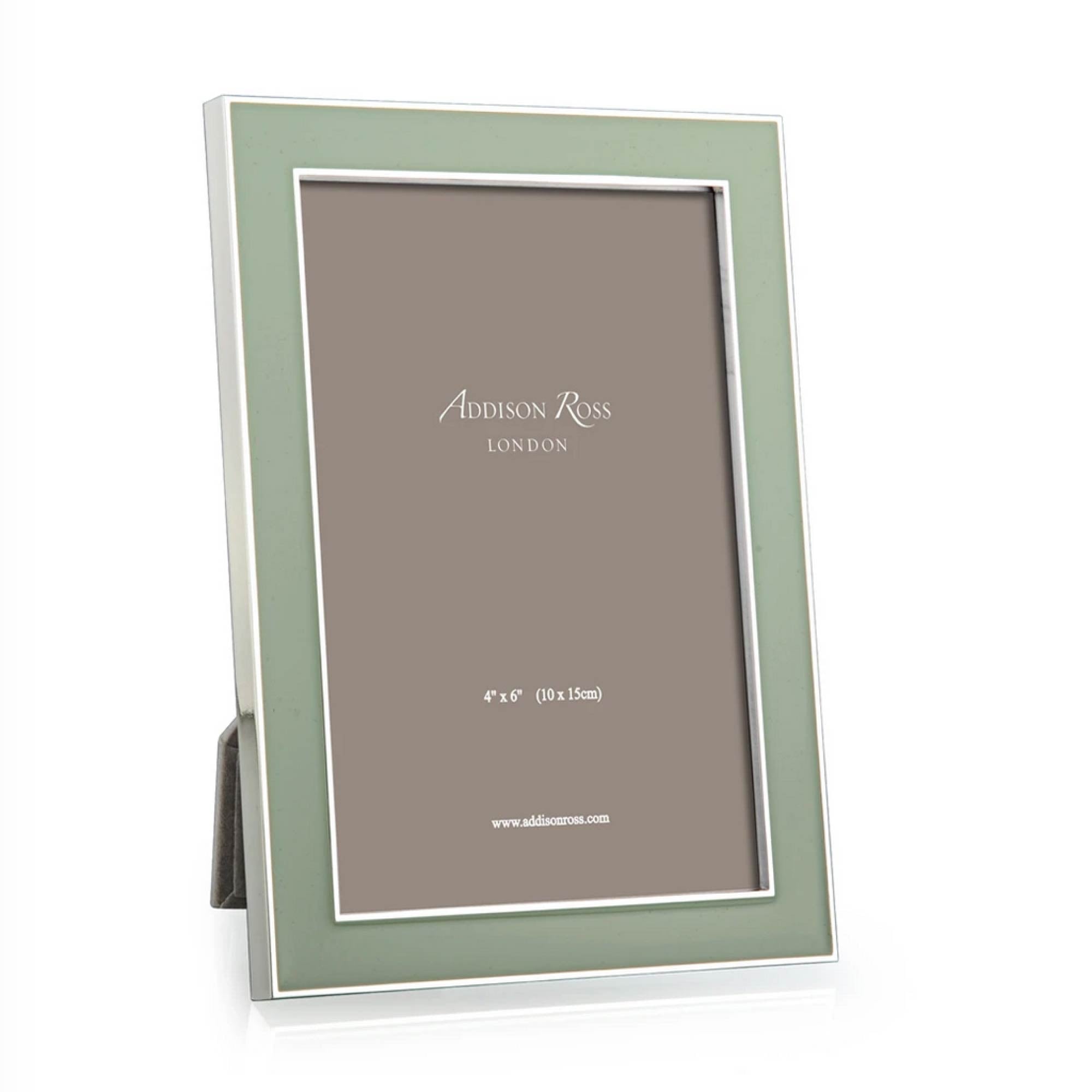 An enamel frame in a sage green finish, with silver plate.