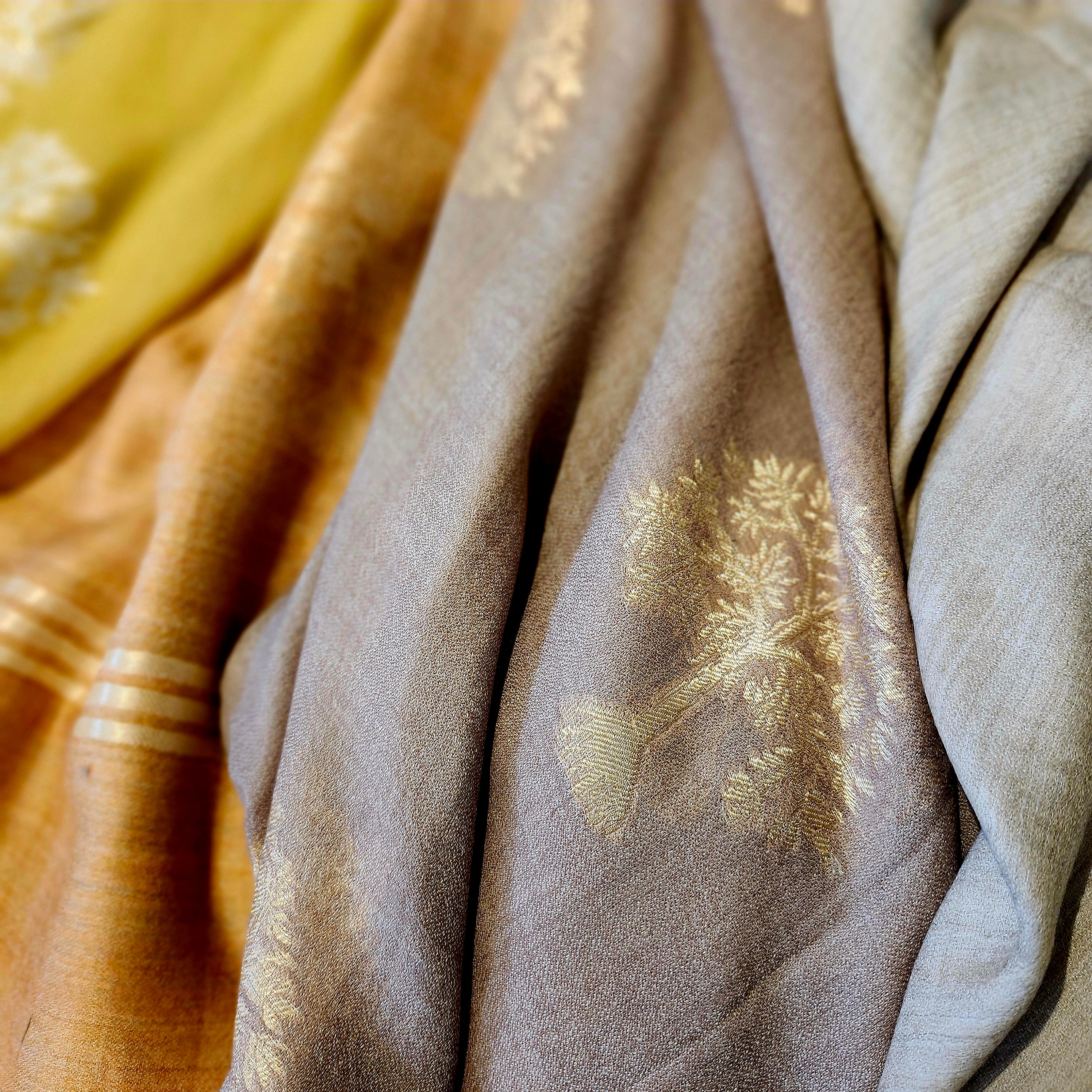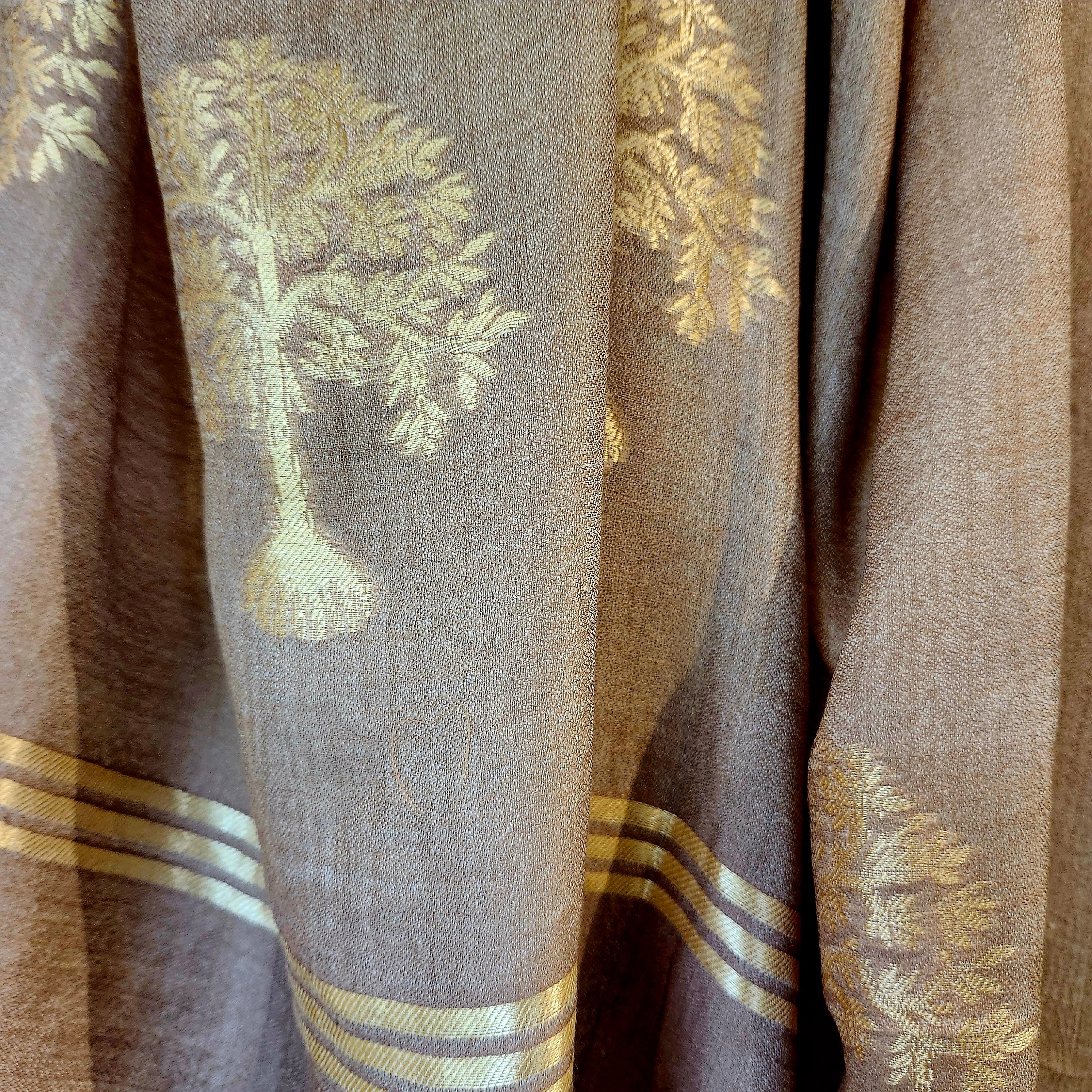 Stunning, luxurious and soft pashmina, embroidered with a tree motif in a subtle contrasting colour. An elegant, sophisticated shawl that would look wonderful to enhance a plain coloured dress, for a glamorous evening, or even with your casual clothes.